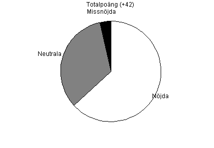 | | Missnöjda (<0) | 2 | 3 % | | Neutrala (0) | 19 | 33 % | | Nöjda (>0) | 36 | 62 % |